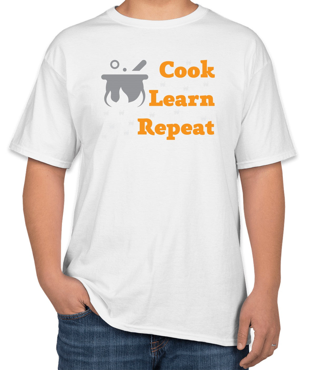 Designed for aspiring chefs, culinary students, and food lovers, this T-shirt is a reminder that the key to mastering culinary skills is to cook, learn, and repeat. Whether you're learning new recipes, experimenting with ingredients, or teaching others, this T-shirt is your go-to kitchen attire.