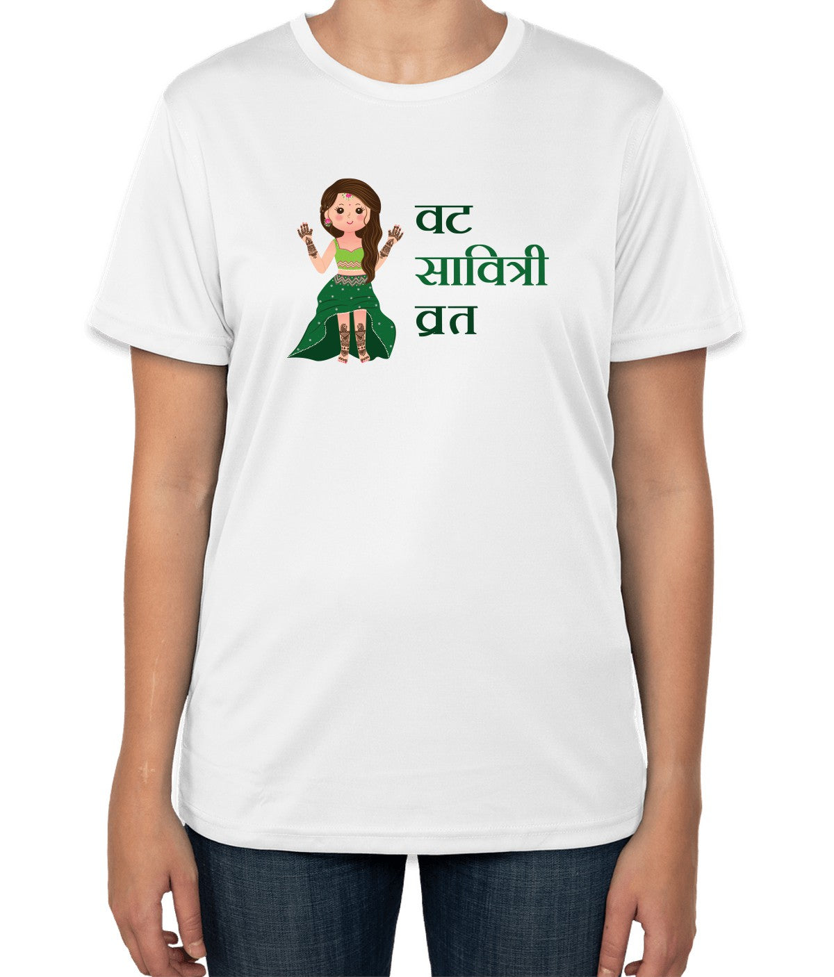 Pair this T-shirt with traditional or casual bottoms to create a festive and stylish look that reflects the spirit of Vat Savitri Vrat. Whether you're participating in rituals, gatherings, or celebrating with loved ones, this T-shirt is a wonderful choice to embody the essence of the occasion.